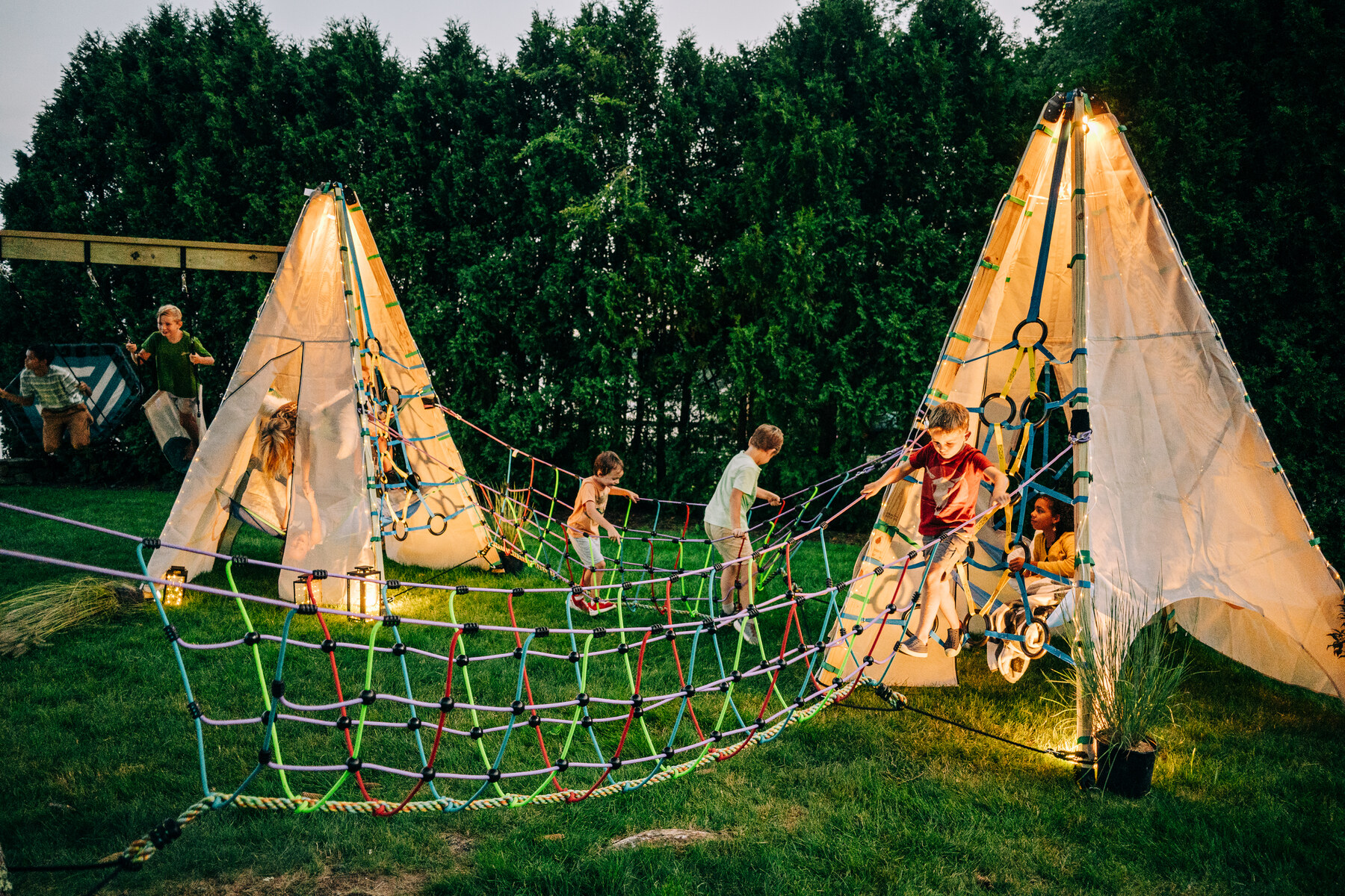 Bijou is the first play system designed for families. Kids to teens to adults can enjoy Bijou in different ways. The Solar panel and 100LEDs make a magical hangout space and the Sway is the perfect place to enjoy your morning coffee.