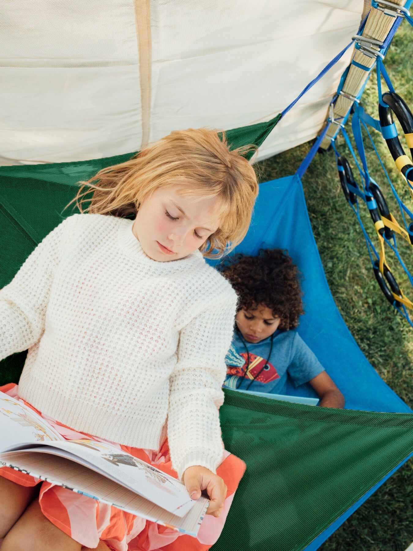 Designed for any space, from backyard lawns to sunny decks, the Nest transforms into whatever your family needs: a shaded reading nook, a creative hideaway, or an afternoon daydream spot.