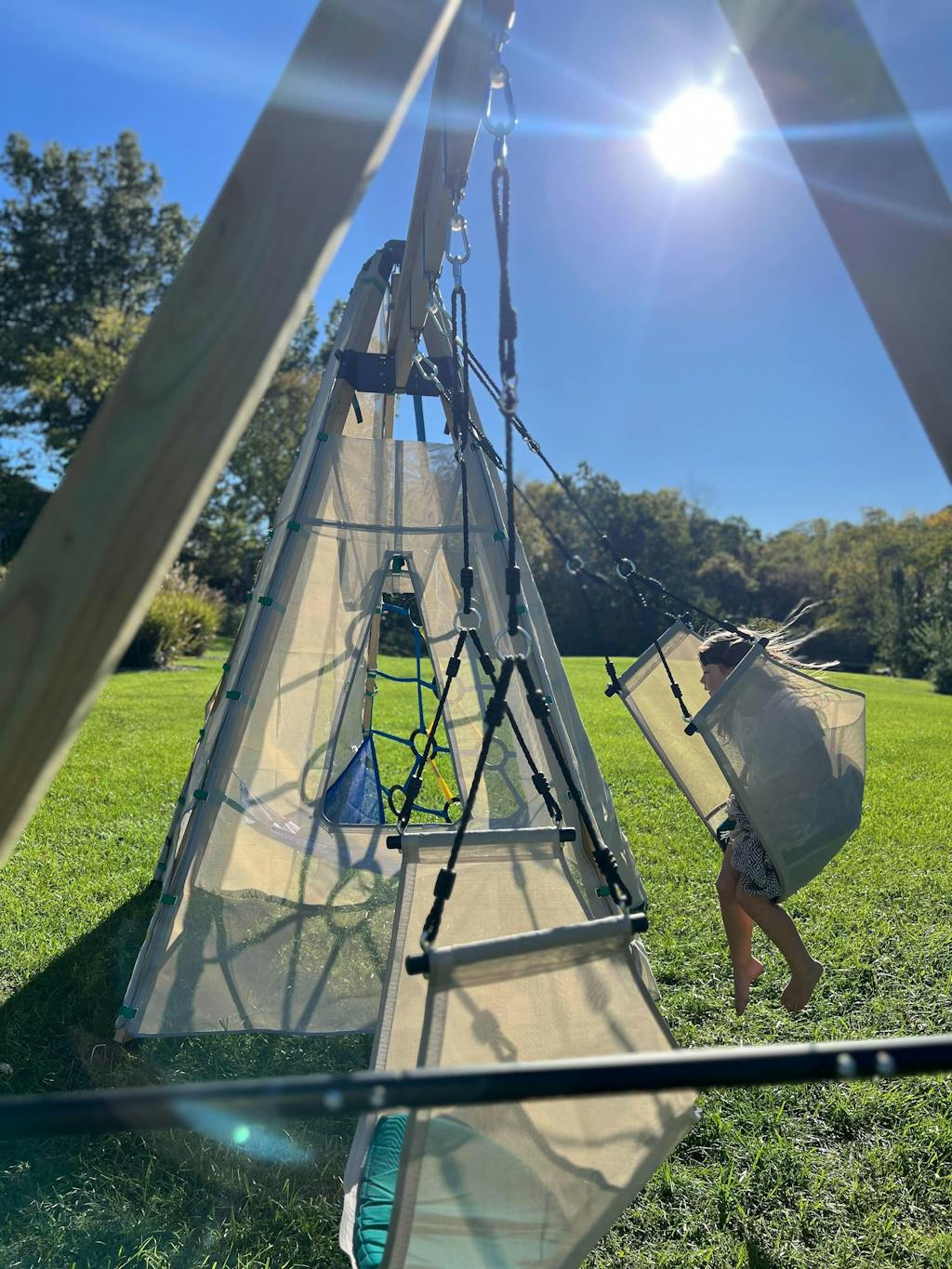 Bijou is the first play system designed for families. Kids to teens to adults can enjoy Bijou in different ways. The Solar panel and 100LEDs make a magical hangout space and the Sway is the perfect place to enjoy your morning coffee.